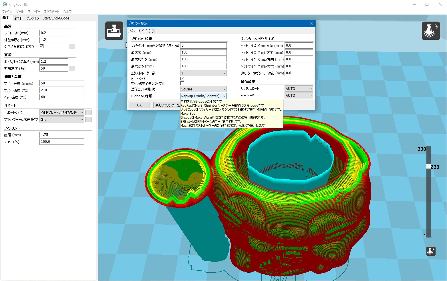 2020年に購入した、KingRoon3Dプリンターに付属の専用スライスソフト。
