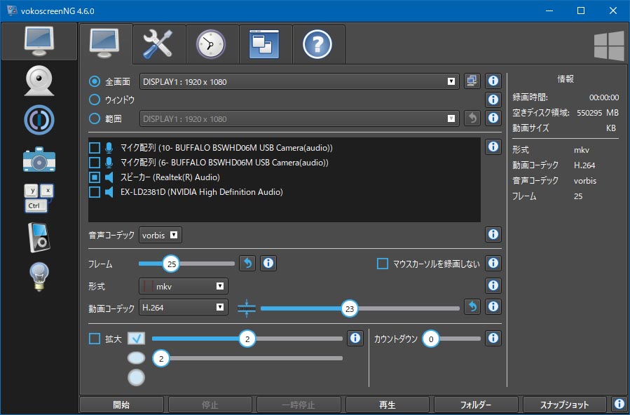 「Bandicam」の代替アプリとして使用。 日本語対応。