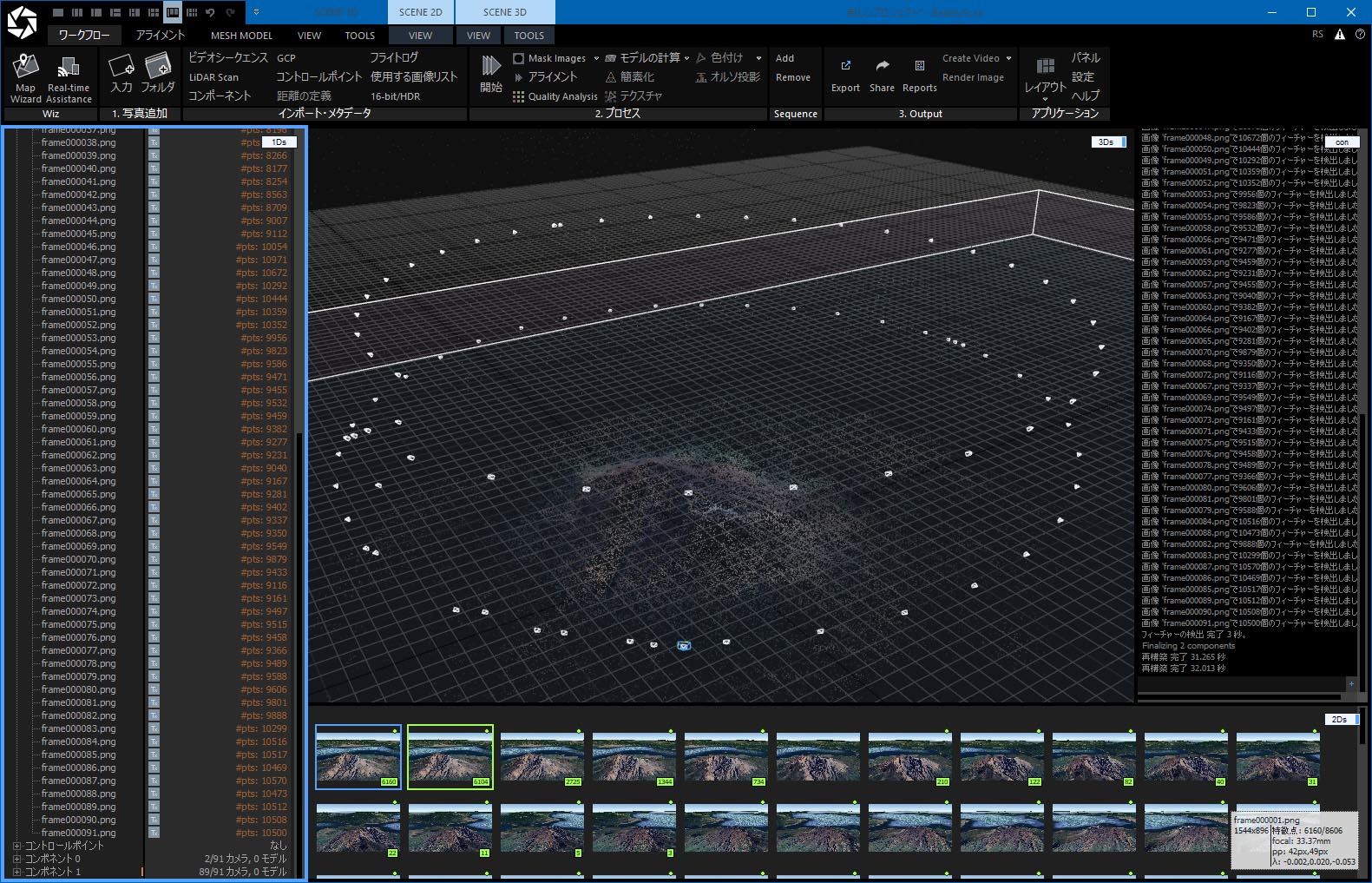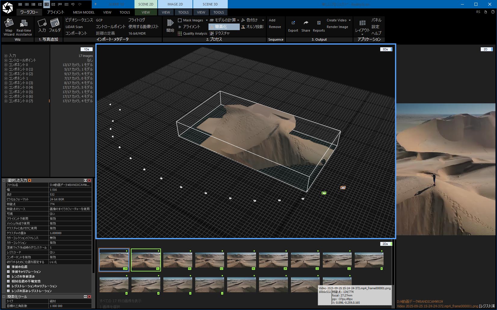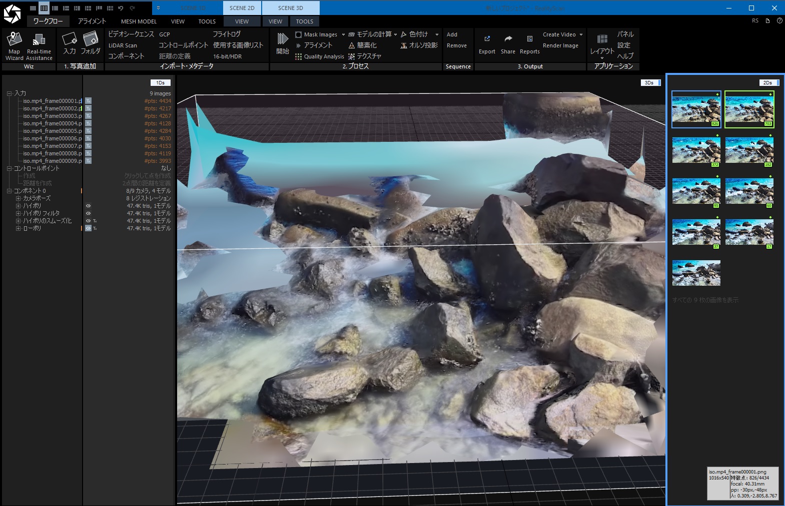 2..取得した映像データを RealityScan アプリに「ビデオシークエンス」モードでインポート。