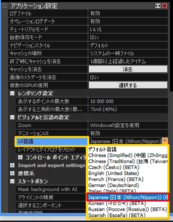 「RealityScan 2.0.1」の多言語対応は現在のところBeta版。