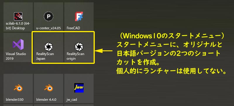 オリジナルの「RealityScan.exe」と、日本語に特化した「RealityScan_jp.exe」両方のショートカットを作成し、どちらも利用できるようにすると色々な言語で利用できて便利です。