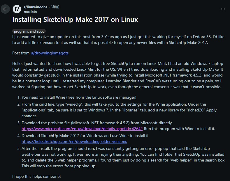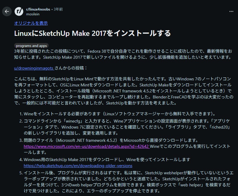 SketchUp2017(Free)をLinuxで動作させるためのメモ