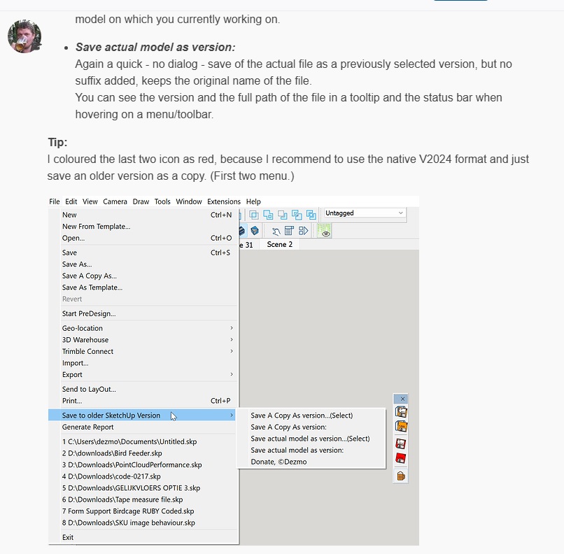 SketchUp 2024 以降、旧バージョンでのデータ保存ができなくなり、フリー版の SketchUp とデータを共有しながら作業する身としては、この機能省略は不便極まりない!